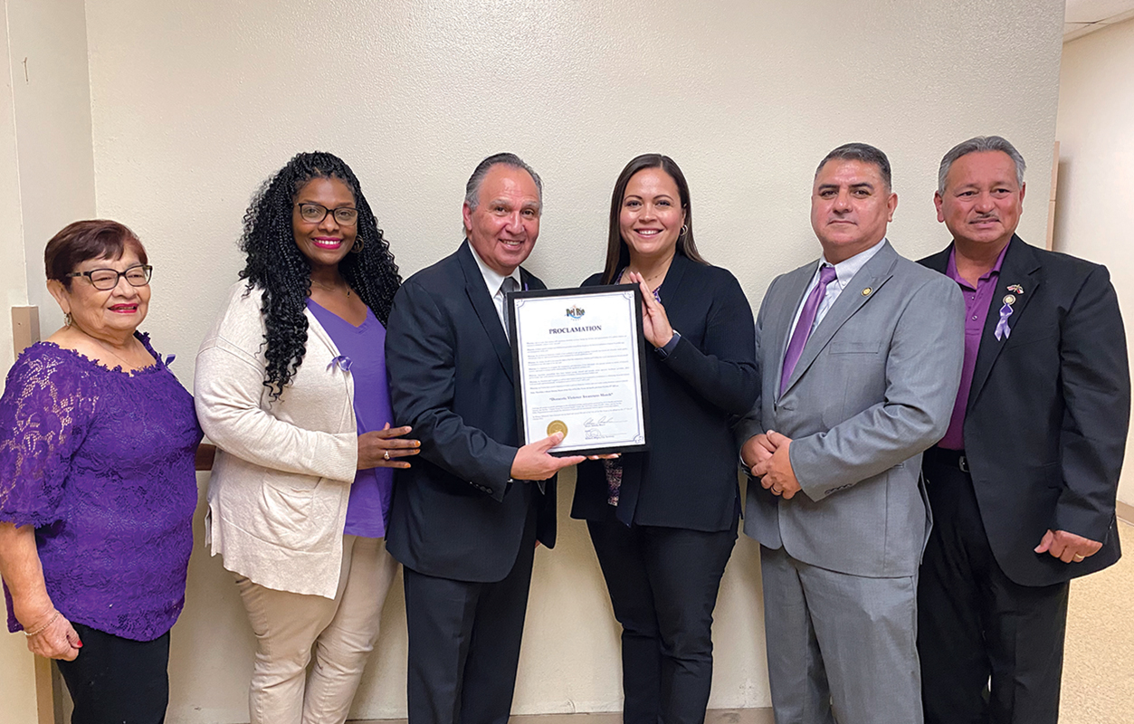 Del Rio Mayor Al Arreola read a proclamation designating October as Domestic Violence Awareness Month and presented it to BCFS staff.