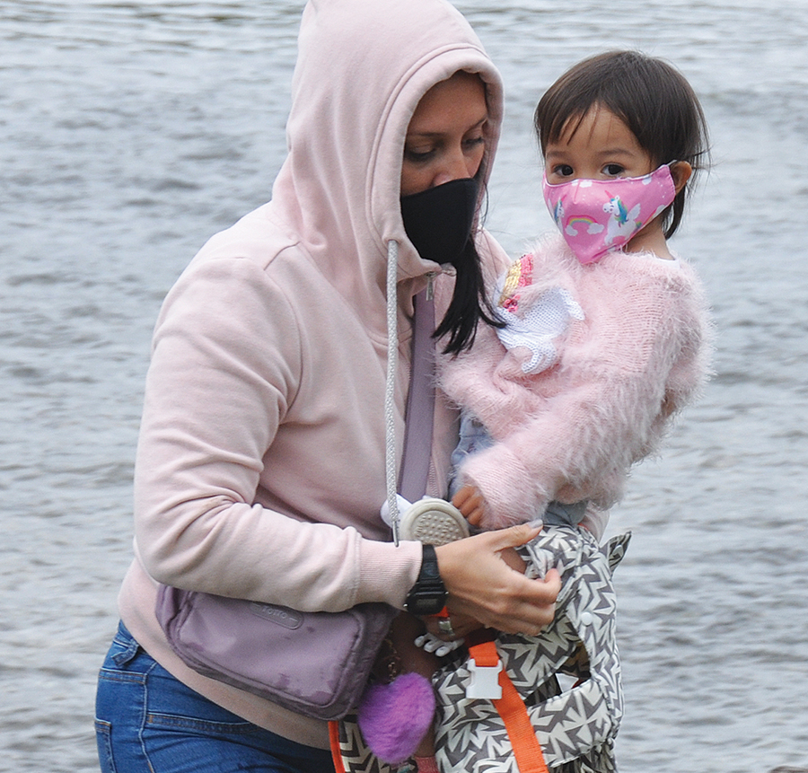 Two of those making the crossing were small children – a boy whose father carried him through the water on his shoulders and an even younger girl who was carried over in a man’s arms.