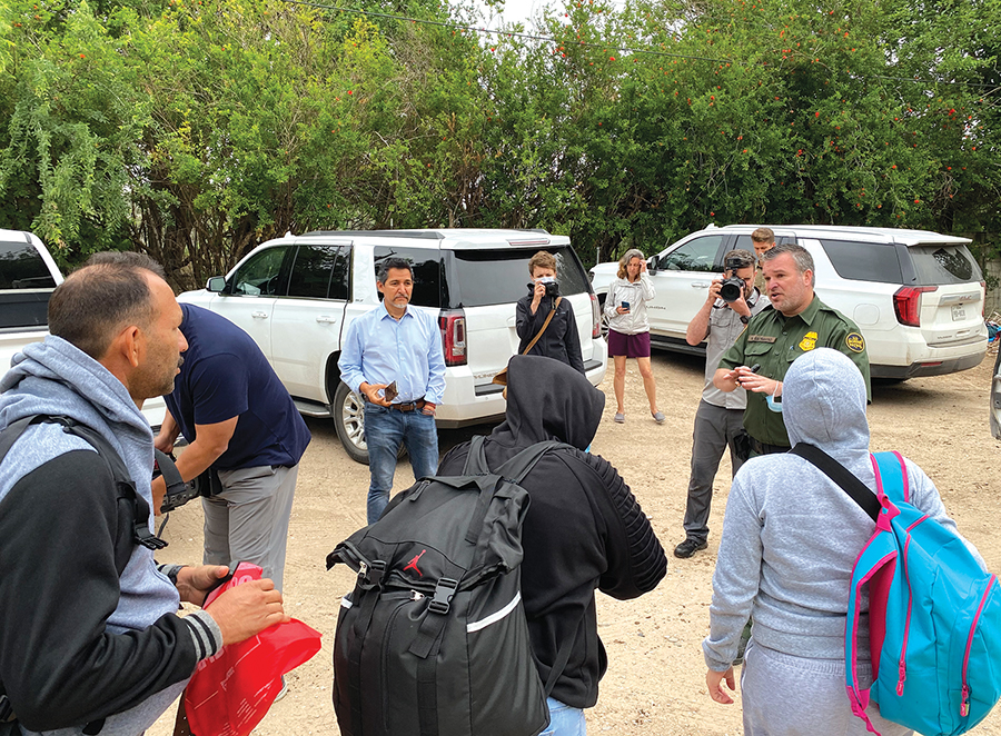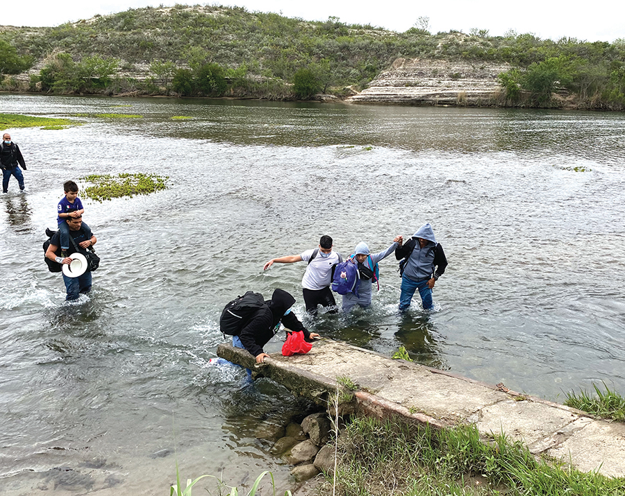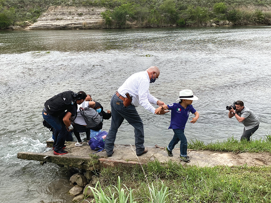 At some point, the guide or guides turn back to Mexico, and the immigrants make their way through the river to the Texas bank. There, sheriff’s office deputies or Texas Department of Public Safety troopers meet them, direct them to stay in a group and wait with them until a Border Patrol transport van arrives to take the immigrants into custody for processing.