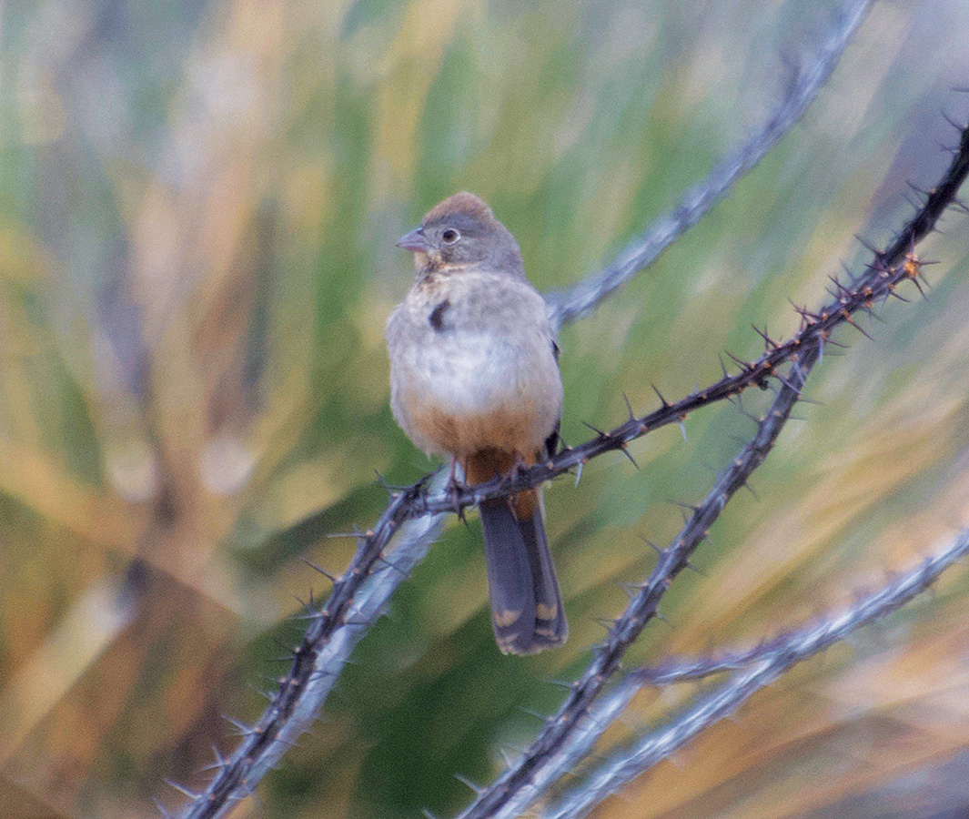 Even on the worst days in the past, the park has been alive with birds. Northern Mockingbirds, Pyrrhuloxias, Cactus Wrens and Loggerhead Shrikes perched on the tall yucca plants throughout the park, and the grassy meadows inside the park were alive with large flocks of the resident Black-throated Sparrows and migrant Lark Buntings and a variety of migrant sparrow species – Savannah, Vesper, Chipping, Lincoln’s, Brewer’s, Grasshopper and Le Conte’s. American Kestrels, White-throated Swifts and Common Ravens cruised the sky above the park.