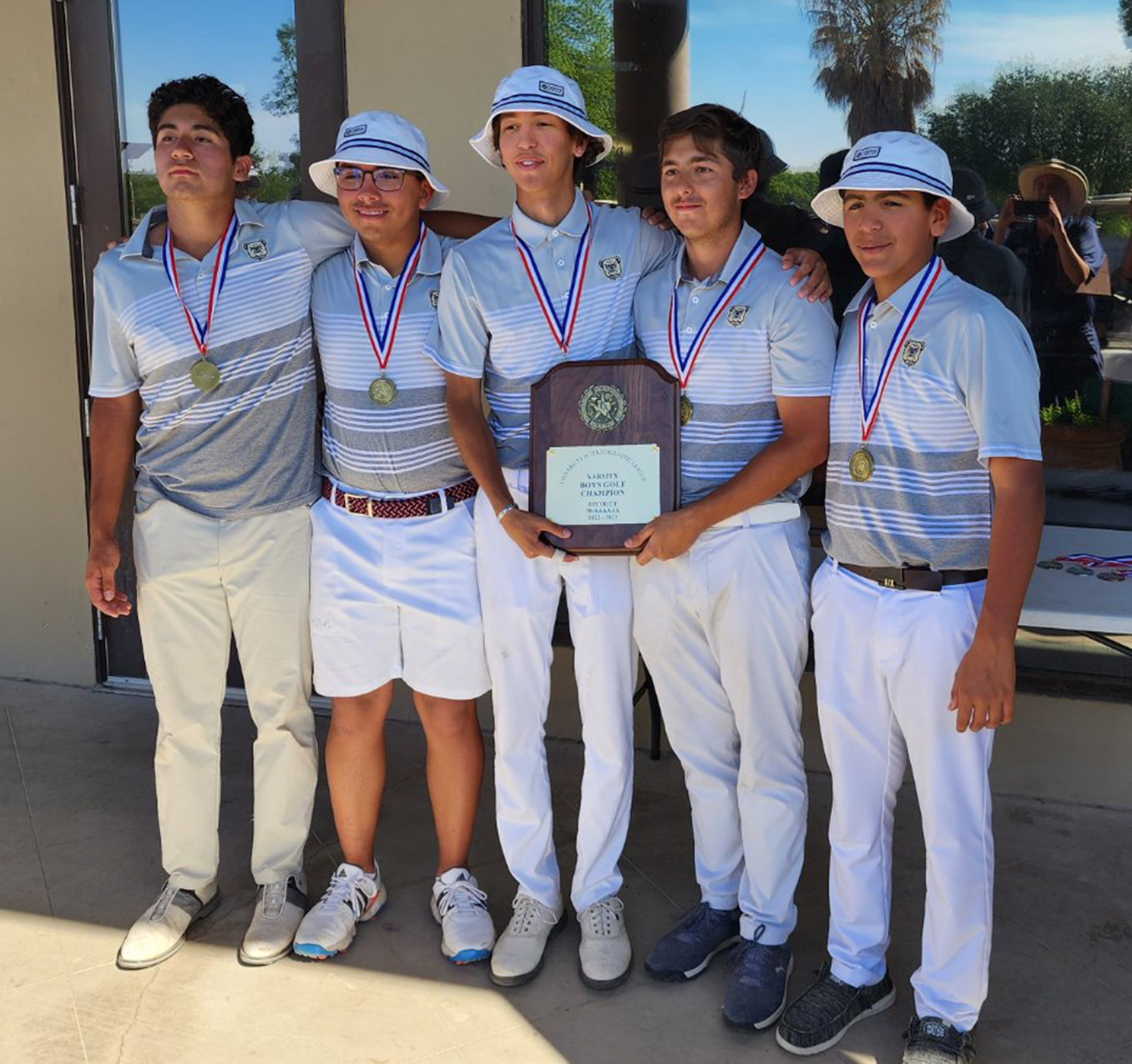 Alexander Gold won the district championship with a team score of 667. The team included Jacob Salinas (84, 81 – 165), Brandon Urdiales (85, 84 – 169), Ruben Valdez (85, 84 – 169), Richie Rodriguez (82, 88 – 170) and Nicholas Lopez (95, 82 – 177). Only the top four individual scores are used each day to determine the team’s score.